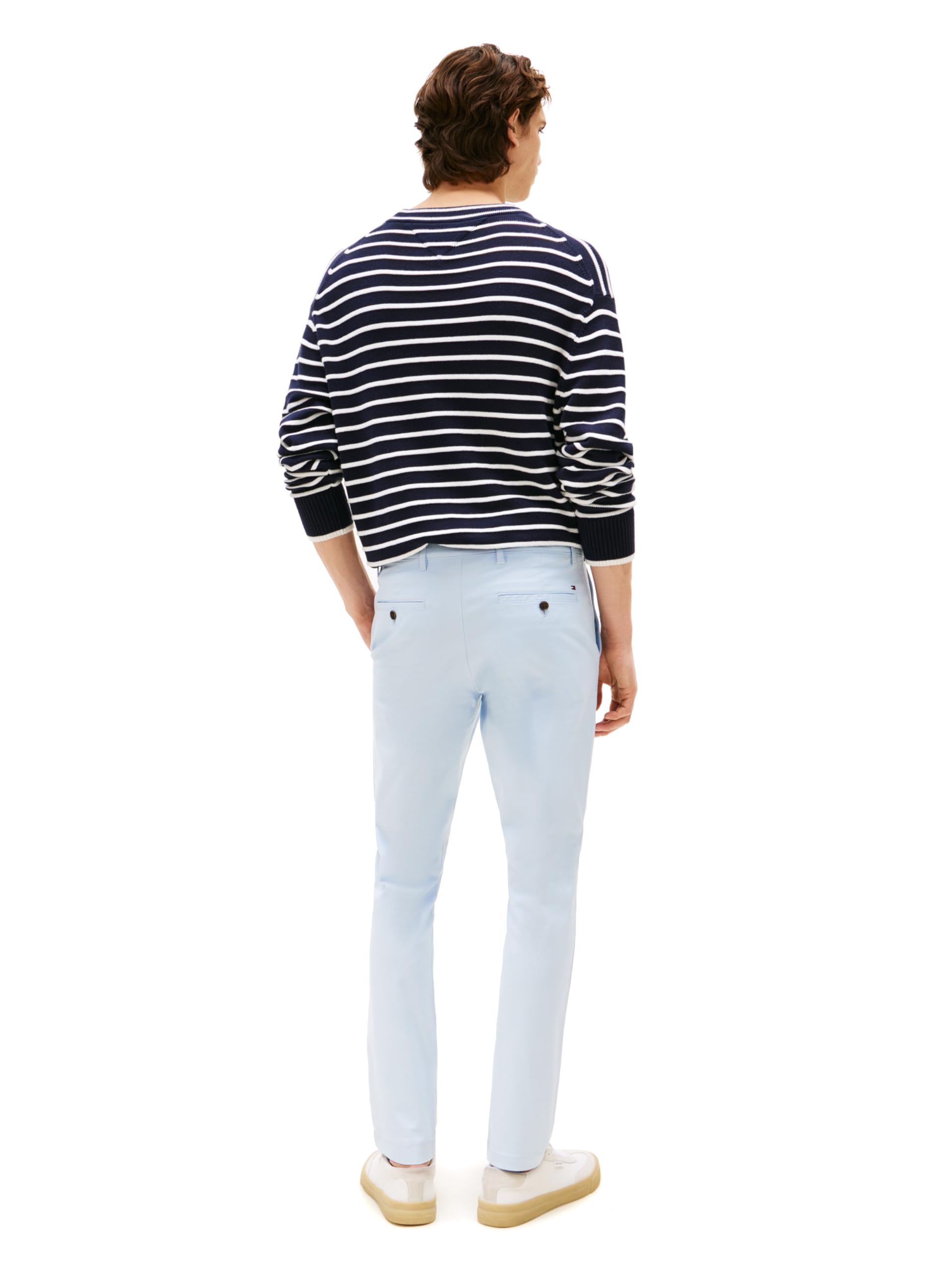 - SLIM FIT: With a streamlined, modern look, these Tommy Hilfiger chinos for men are cut slim through the seat and thigh and taper toward the ankle. Designed to sit just below the waist, they feature a mid-rise.