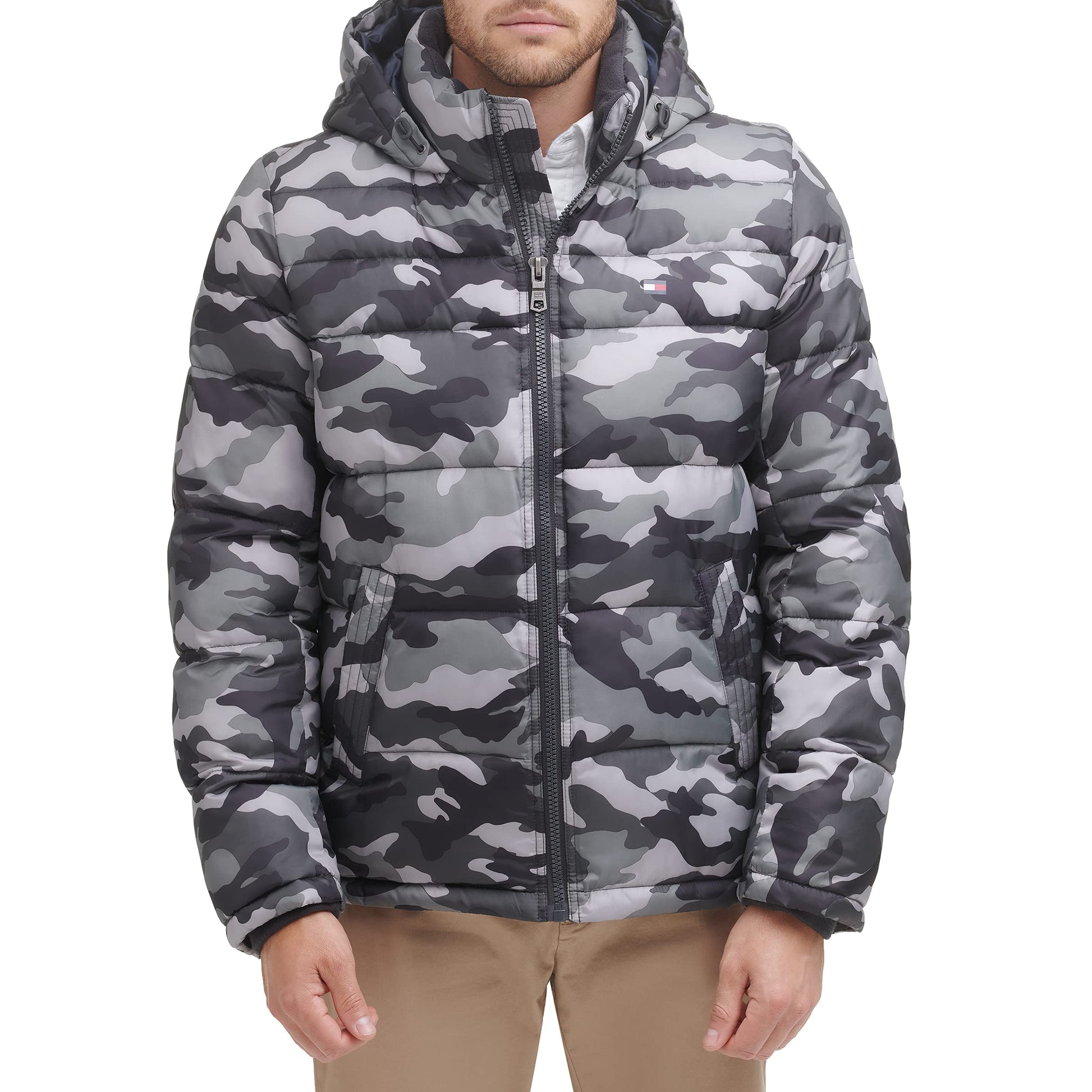 Tommy Hilfiger Men's Hooded Puffer Jacket, Grey Camouflage, 4X-Tall