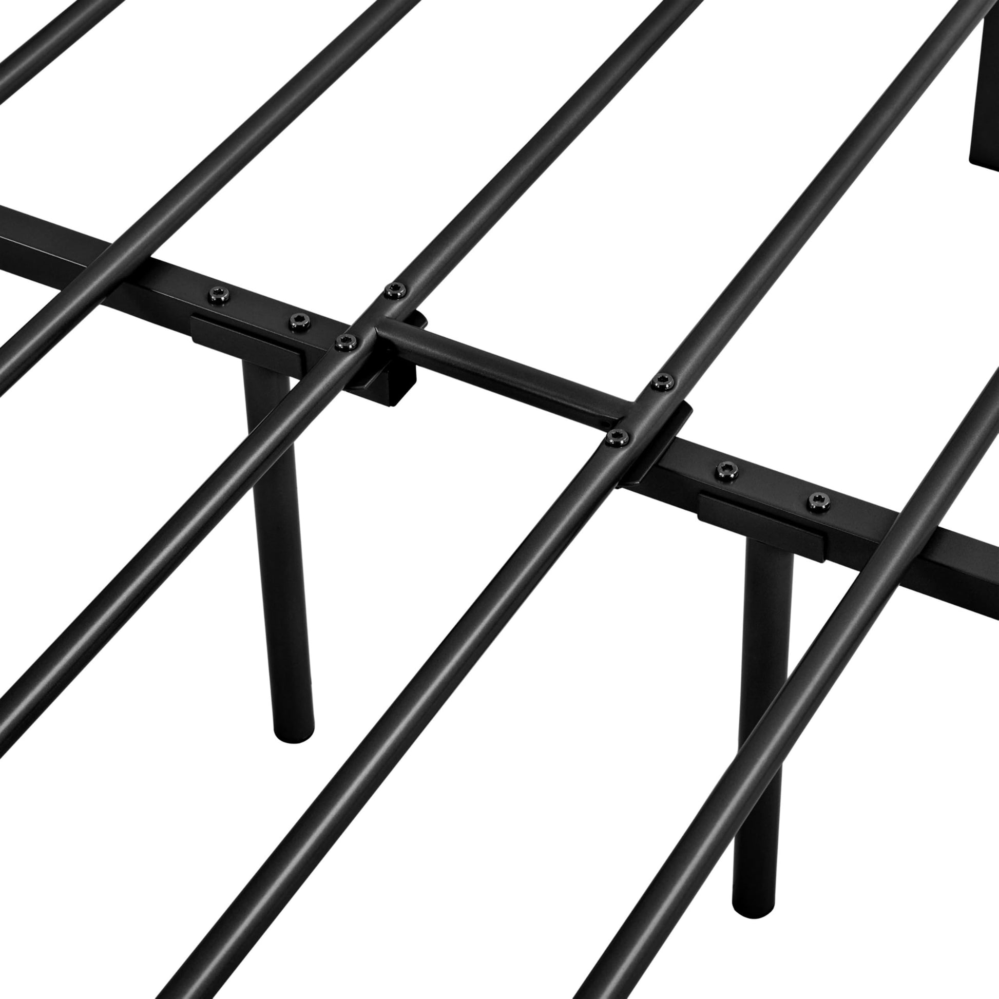 - STRONG AND DURABLE: This california king robust bed base is fully constructed of california king size metal frame for large load-bearing capacity. Reliable frame features 12 metal slats between two sides which provides you with strong support for a relaxing sleep. The powder-coated surface features medium rust and scratch resistance for long term use. Besides, not shaky after proper assembly.