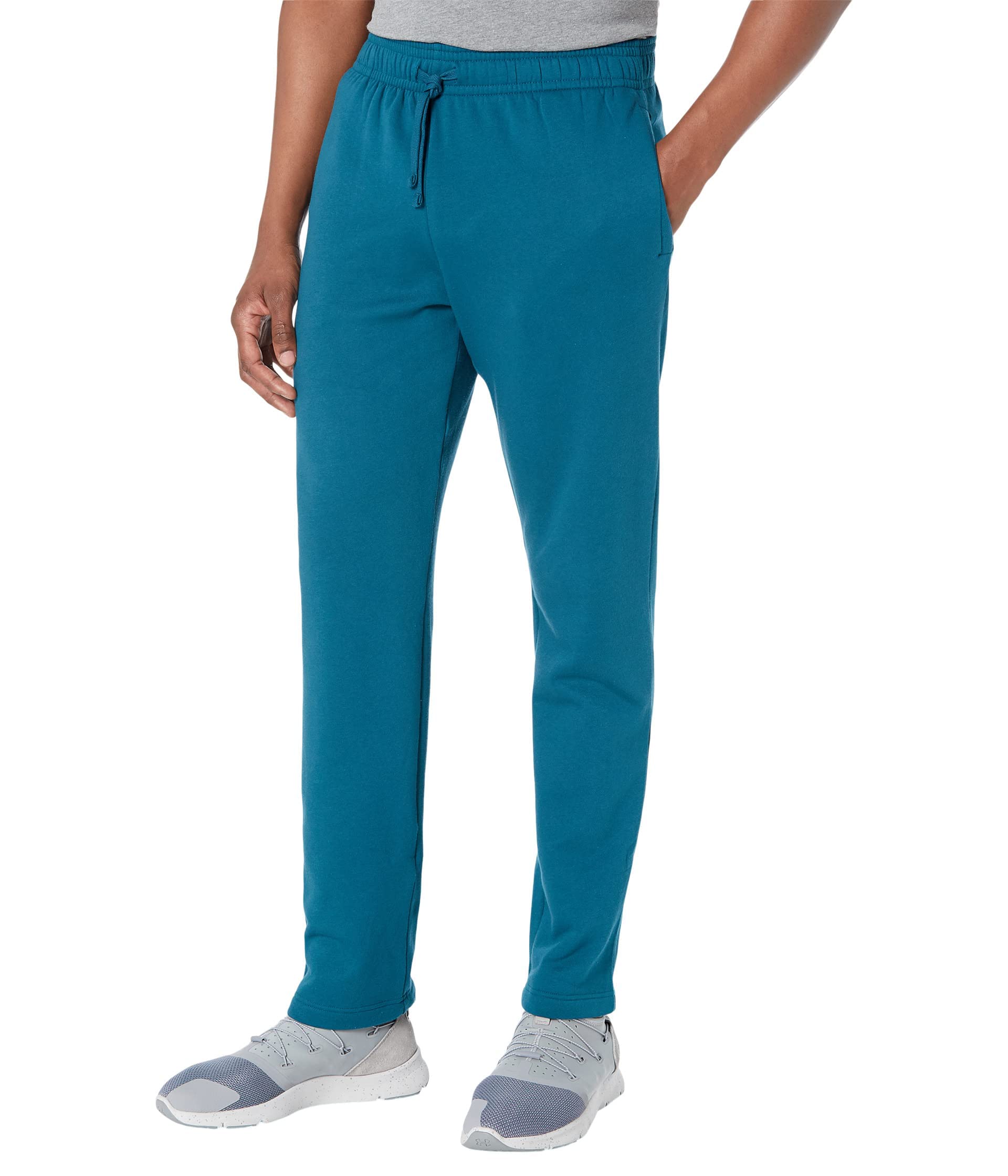 Ultra-soft, mid-weight cotton-blend fleece with brushed interior for extra warmth. Encased elastic waistband with external drawcord. Open hand pockets with right-side internal phone pocket.