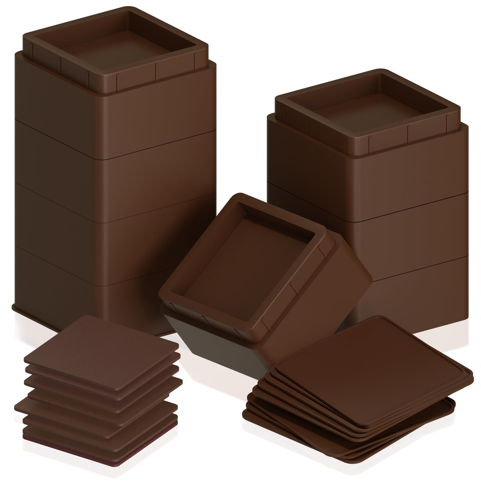 Utopia Bedding Bed Risers 2 Inch - Pack of 8 - Adjustable Furniture Risers 2 & 4 inch - Anti Slip Foam & Rubber Pad - Stackable Beds Lifts Heavy Duty for Sofa, Bed, Table, Couch & Chair (Brown)