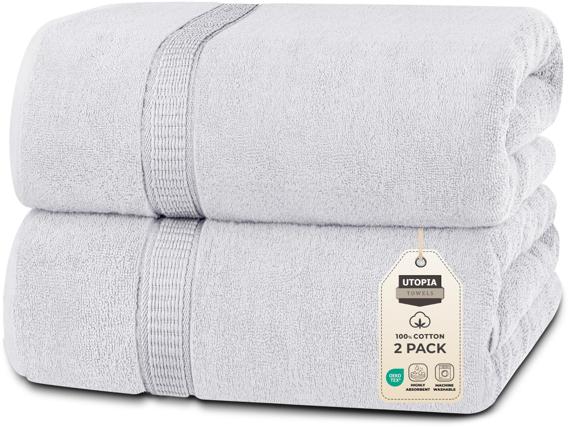Utopia Towels Luxurious Jumbo Bath Sheet 2 Piece, 600 GSM, 35 by 70 Inches, 100% Ring Spun Cotton, Highly Absorbent and Quick Dry Extra Large Bath Towel, Super Soft Towel, Silver