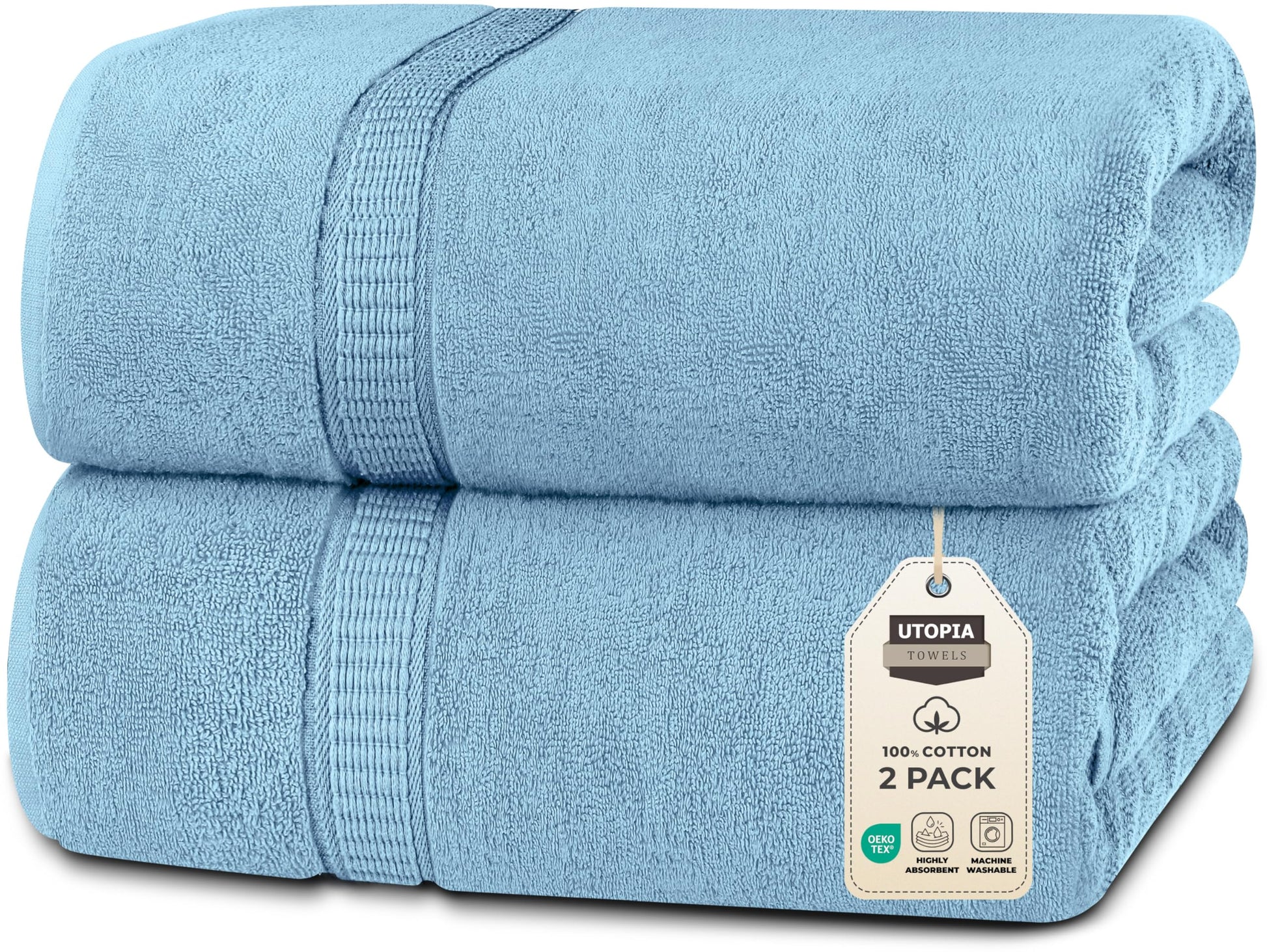 Utopia Towels Luxurious Jumbo Bath Sheet 2 Piece, 600 GSM, 35 by 70 Inches, 100% Ring Spun Cotton, Highly Absorbent and Quick Dry Extra Large Bath Towel, Super Soft Towel, Sky Blue