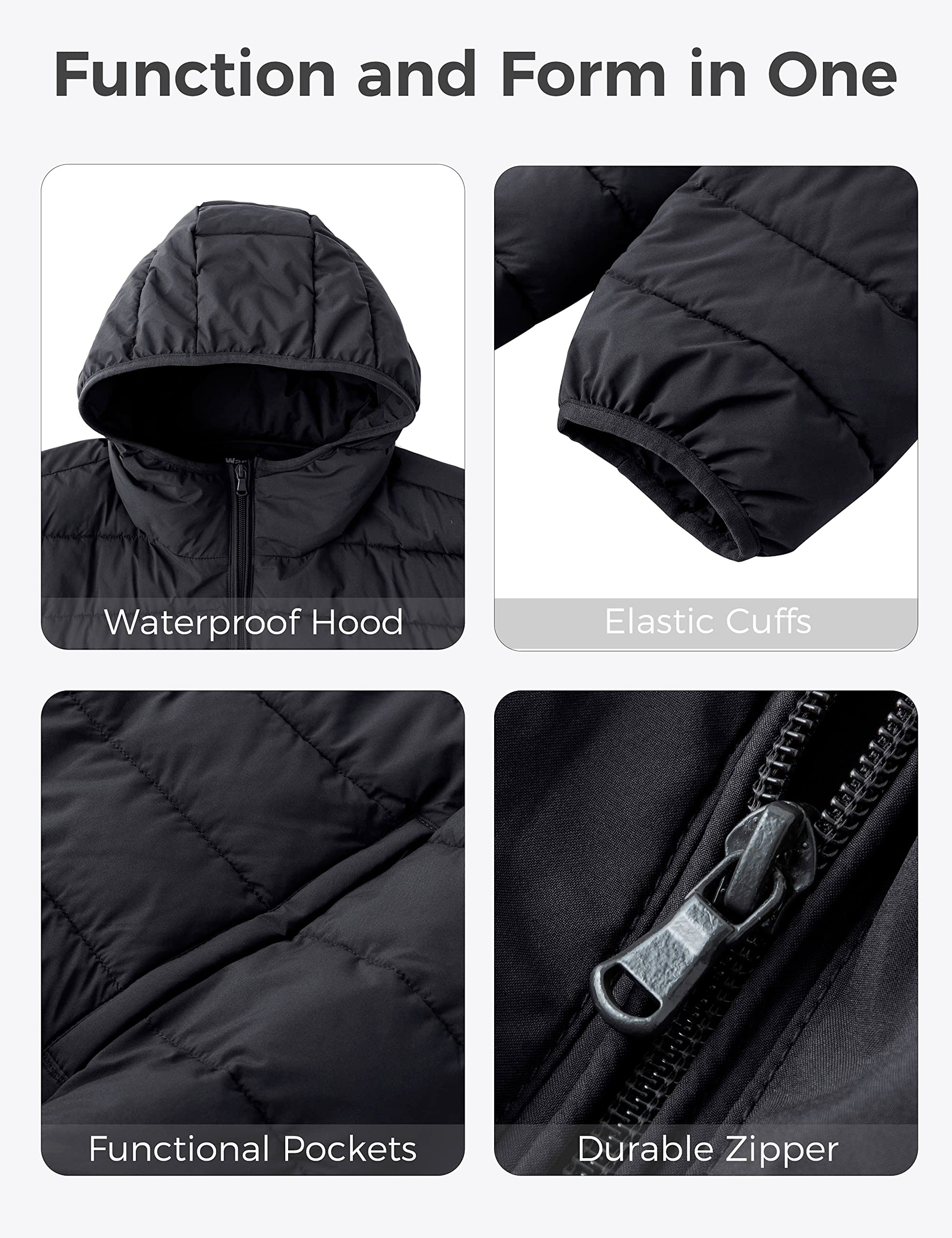wantdo Men's Big and Tall Lightweight Puffer Coat Waterproof Insulated Winter Jackets Black Large Tall