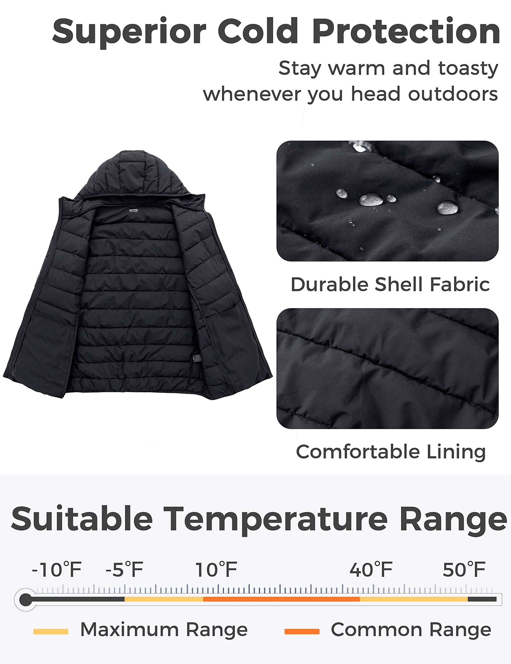 wantdo Men's Big and Tall Winter Coat Zip Up Lightweight Puffer Jacket with Hood Black XX-Large Tall