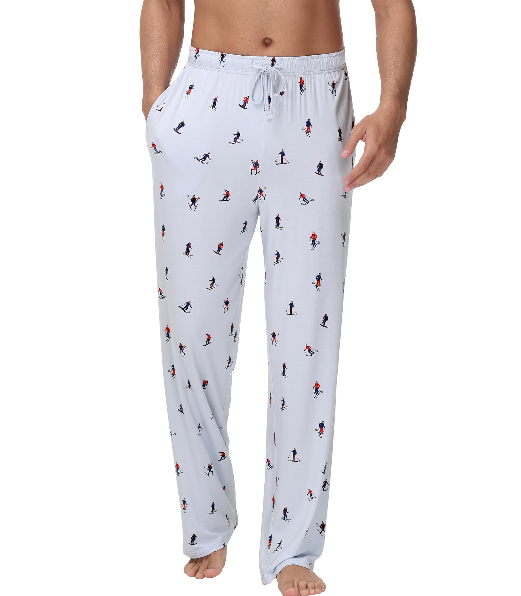 WiWi Bamboo Viscose Pajama Pants for Men Tall Sleep Bottoms Big Warm Long Pj Lightweight Lounge Sweatpants S-XXL, Skiing on Light Blue, Medium