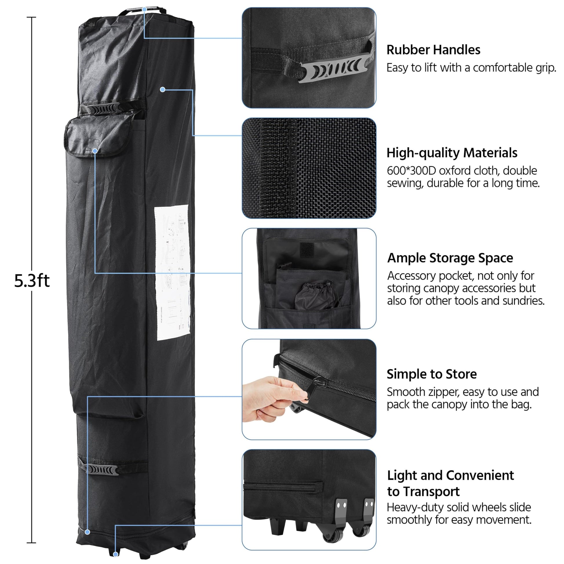 - Hassle-free Moving & Storing: Storing and transporting this heavy-duty canopy tent is a breeze, thanks to its compact folded size and roller storage bag. You can effortlessly roll it or carry it using the handles for short distances, or simply toss it in your trunk for longer trips