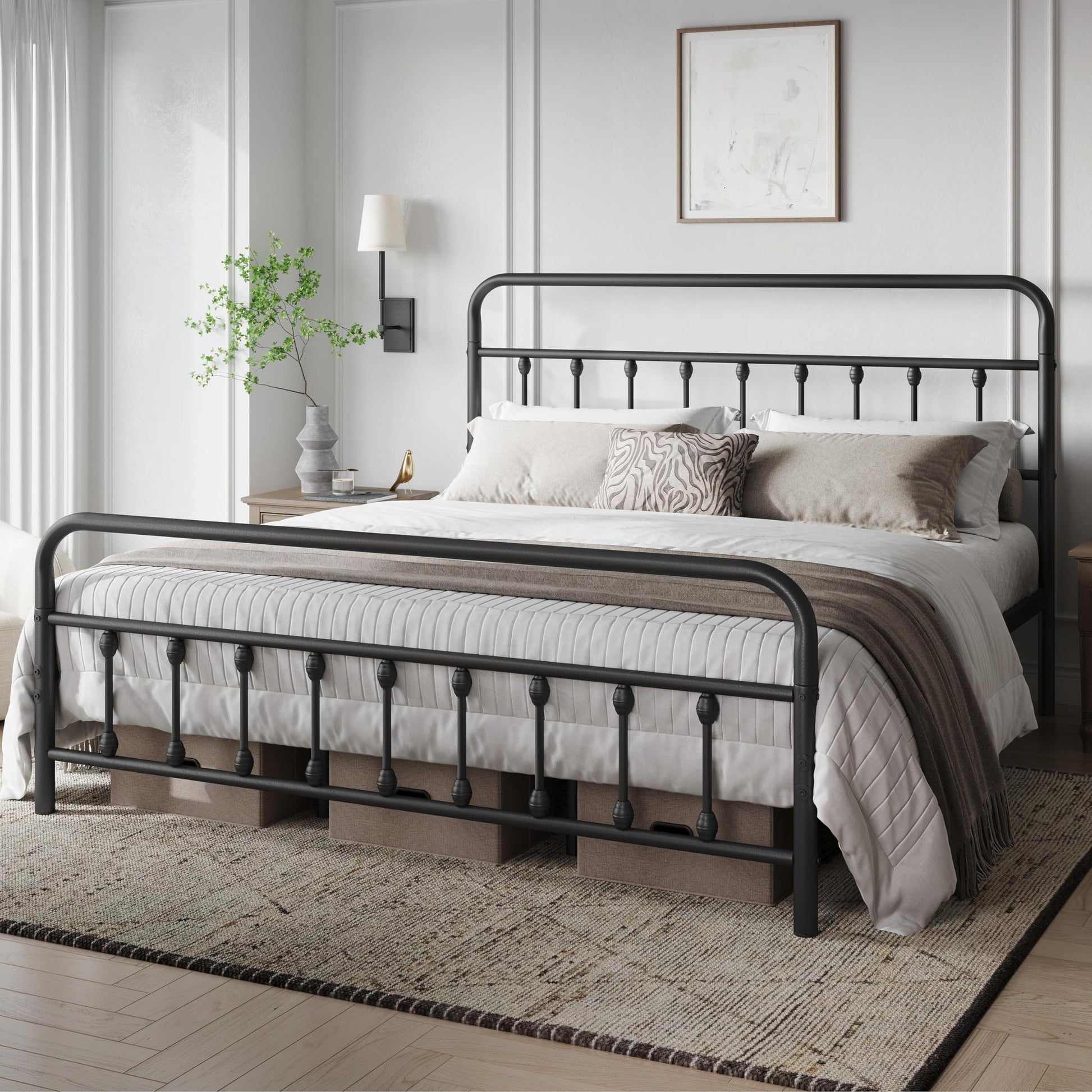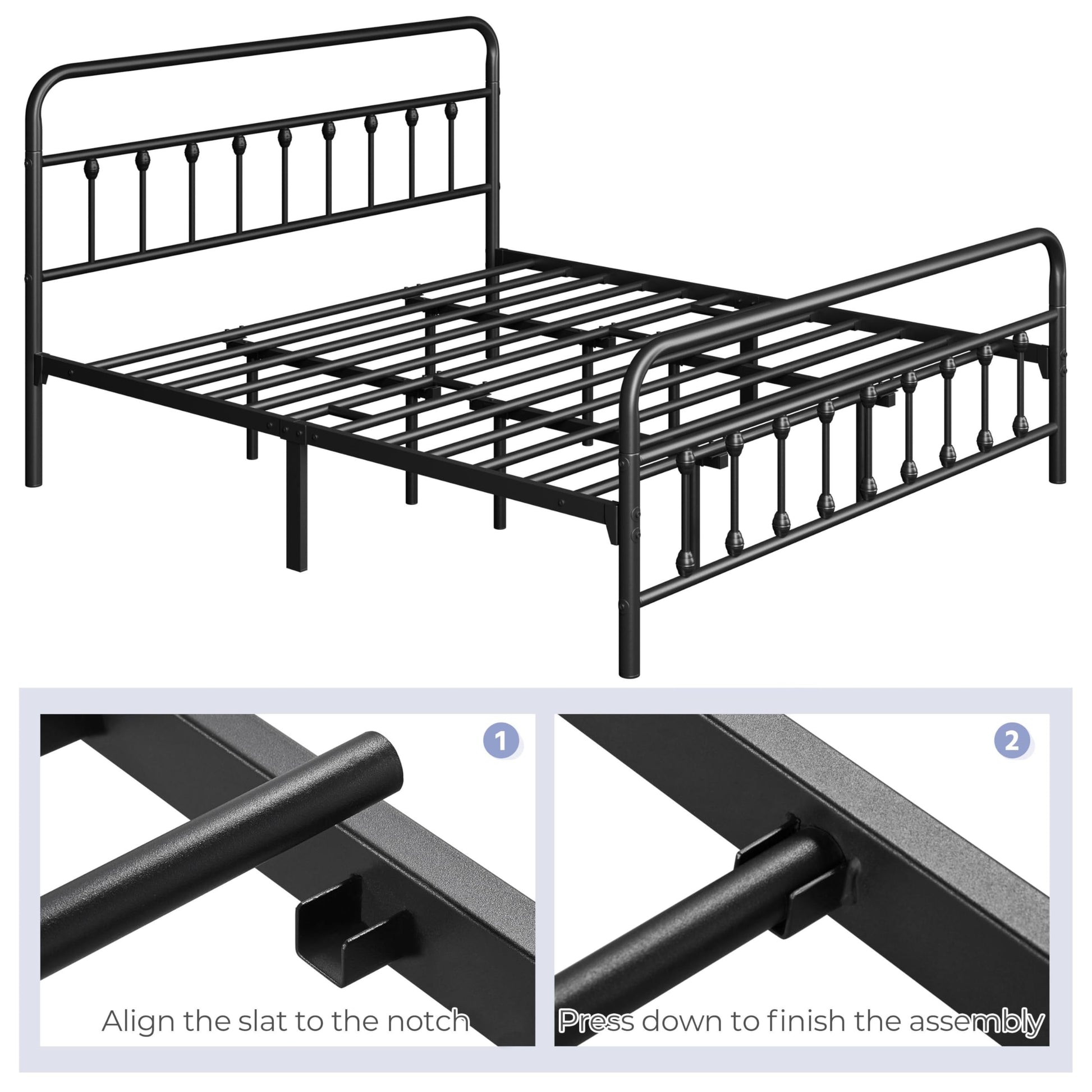 - QUICK ASSEMBLY: We provide all the necessary hardware and tool, and an illustrated installation manual to help you set up this iron bed frame.