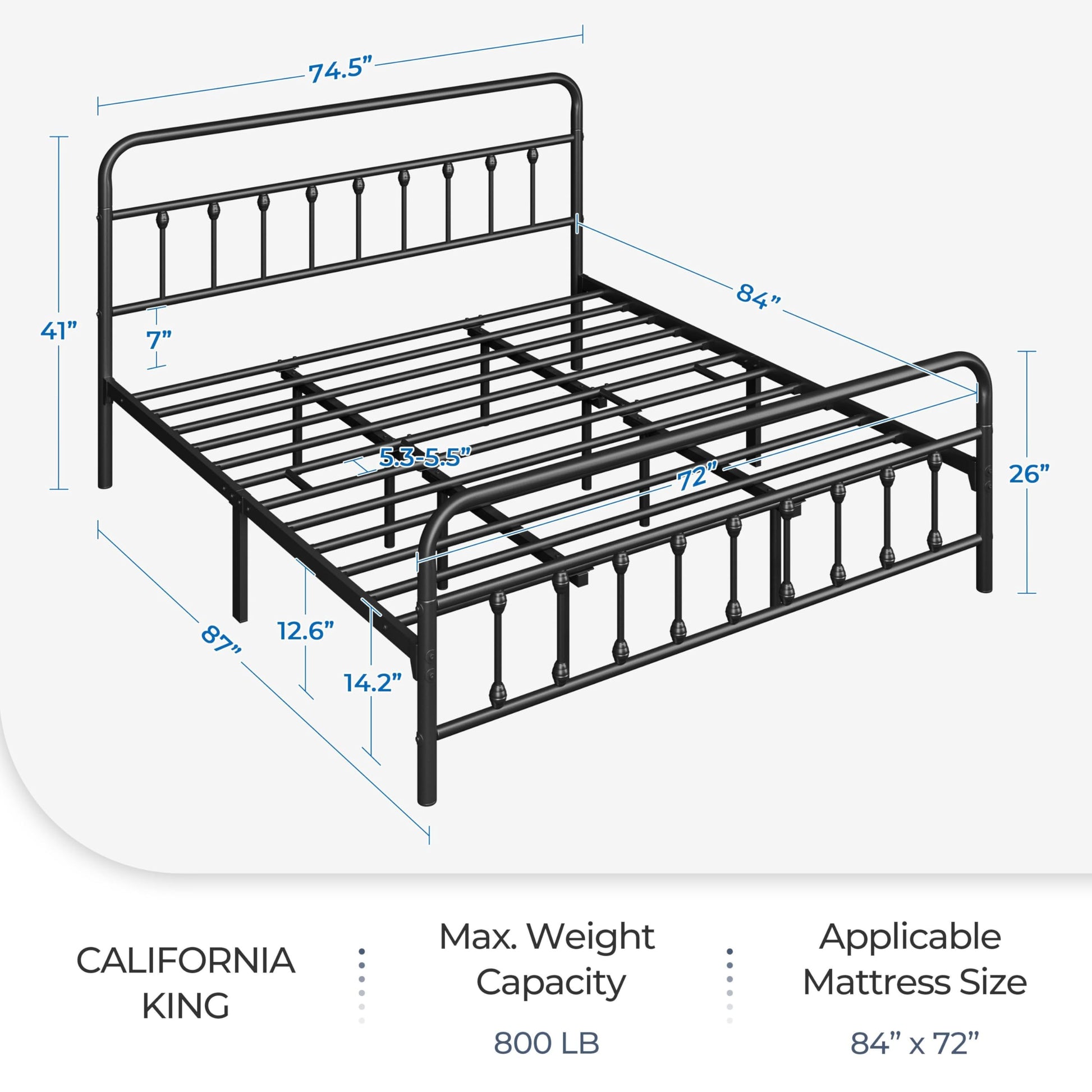 Yaheetech Classic Metal Platform Bed Frame Mattress Foundation with Victorian Style Iron-Art Headboard/Footboard/Under Bed Storage/No Box Spring Needed/California King Size Black