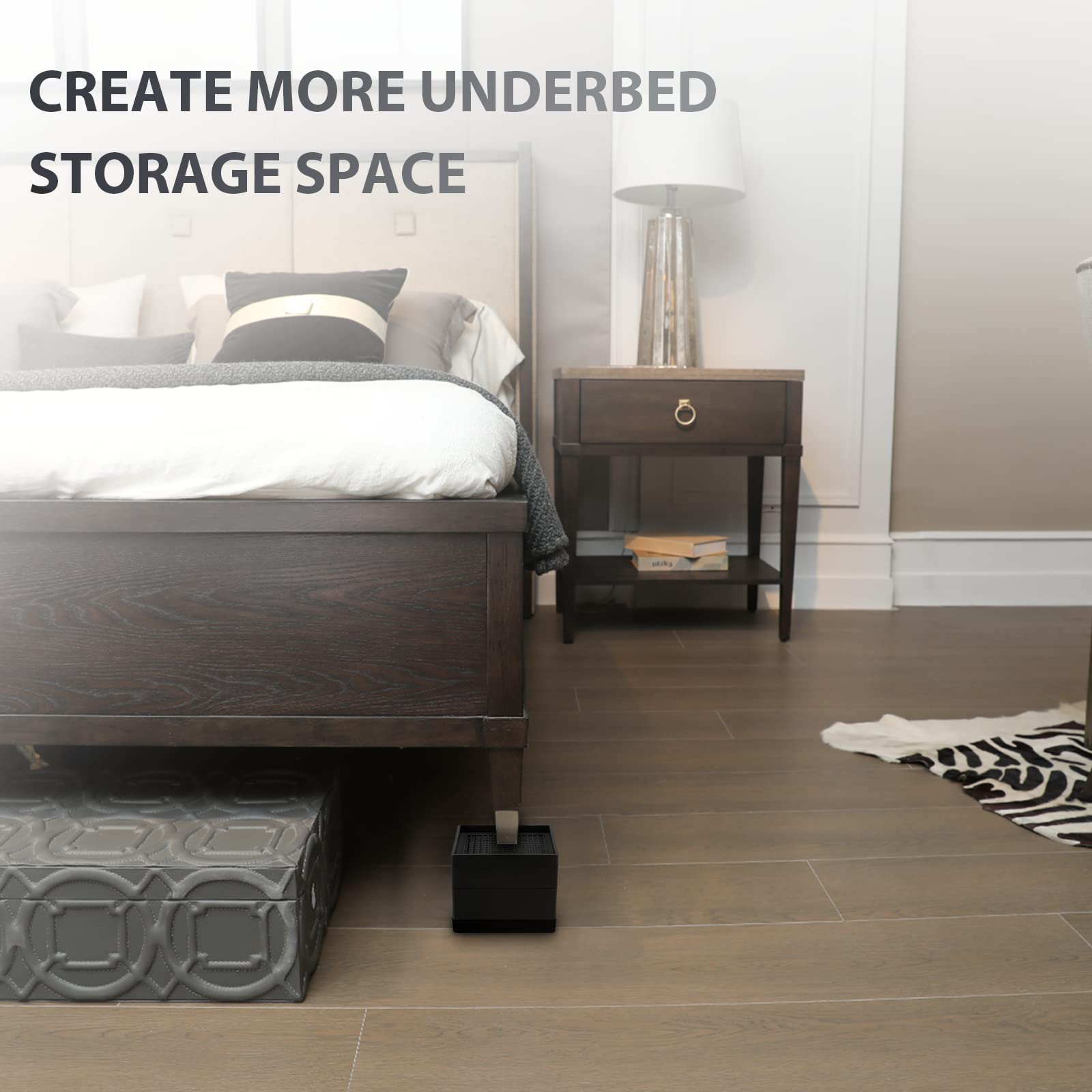 - ๐พ๐๐ ๐ ๐จ๐๐๐๐๐๐๐๐๐๐ ๐น๐๐๐๐:Bed risers heavy duty apply to raise beds,couches,chairs,cabinets,tables and fridge,gave you more storage space.Adjustable bed risers system instantly creates additional under bed storage space, easy to clean.