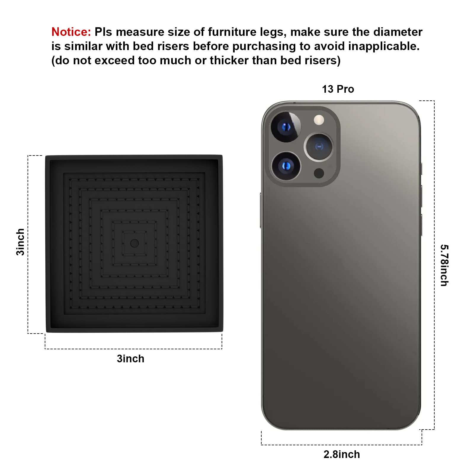 - ๐ฐ๐๐๐๐๐๐๐ ๐ฎ๐๐๐ ๐บ๐๐๐๐๐๐๐๐&๐จ๐๐๐-๐บ๐๐๐๐๐๐ ๐น๐๐๐๐๐ ๐ท๐๐ :Anti-slip design of the top triangular cone avoid furniture sliding around,TPU Rubber Lower Layer design protecting the floor from scratches๏ผand reduce vibration. In order to support your furniture better and more stably, we recommend that you stack no more than 3 layer on one anti-skid pad.